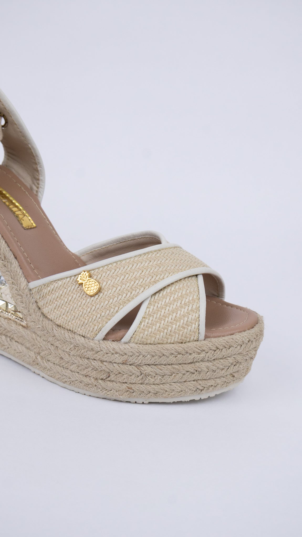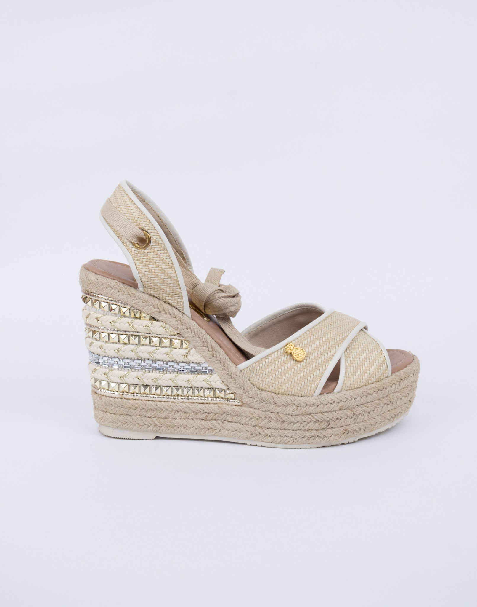 Jute espadrille with leather and embellishments, 7½-inch height